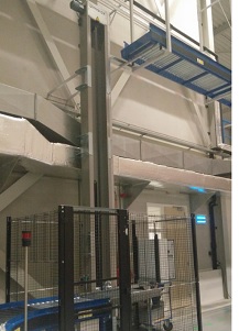 Deze lift ( bvb type Quimarox MK1) wordt gestuurd door 1 motor en heeft een laadplatform voor 1 of 2 bakken/dozen. De hoogtebepaling is via meegeplaatste sensoren of een incrementele encoder. Toegang tot de lift (schacht) is via beveiligde deuren.