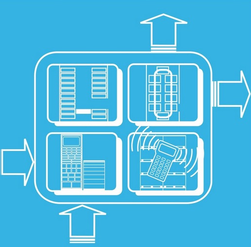 Het betreft hier machines op de baan zoals doosvouwers, doossluiters of tapers. De integratie gebeurt via potentiaalvrije contacten. Standaard zijn deze machines er niet op voorzien om de noodstopsignalen te kunnen koppelen.