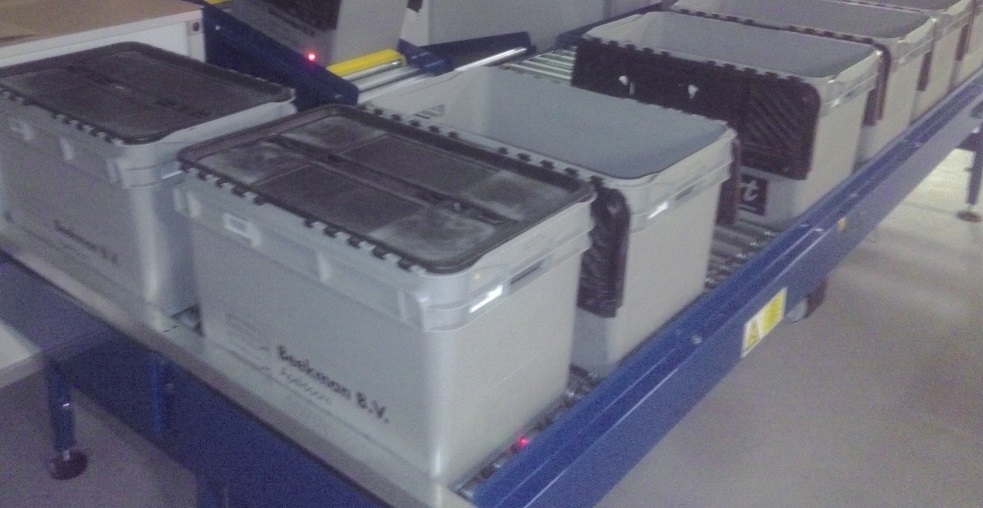 Een transport van plastic bakken is makkelijker dan kartonnen dozen omdat de afmetingen vast zijn en de mechanische geleidingen minder kritisch zijn. Bij een zwart oppervlak (dit kan ook onderkant bak zijn) moet met sensoren met reflector gewerkt worden ipv traditionele sensoren. Een kleine kartonnen doos is een doos waarvan de lengte of breedte kleiner is dan de halve transportbaanbreedte.