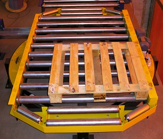 Een draaitafel bevat 2 motoren: 1 motor om de tafel te draaien (0..360°) en de andere motor om de rollenbaan te bewegen. Deze wordt voorzien van de nodig fotocellen.