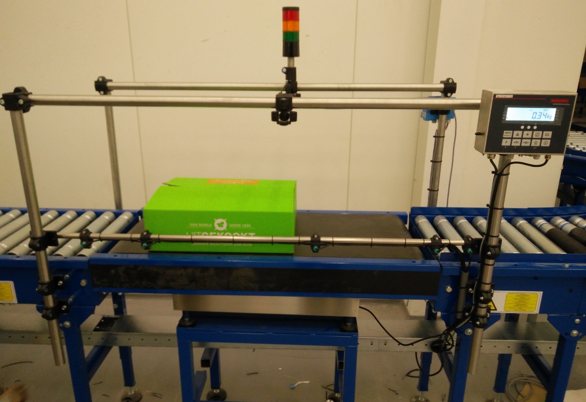 Een weegschaal-aansturing kan continu werken of een doosje telkens laten stoppen, afhankelijk van de gewenste nauwkeurigheid die behaald dient te worden. Het gewicht wordt doorgestuurd naar de PLC voor verdere verwerking. Exclusief uitleesunit ( Holland Weegtechniek, type RS232) , want deze wordt bij de weegschaal geleverd.