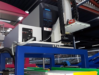 De printer-applicator zal een etiket afdrukken en op een doos kleven. Er is steeds een koppeling tussen PLC en WMS noodzakelijk hiervoor. Alle IO signalen van de printer-applicator worden binnengelezen in de PLC.